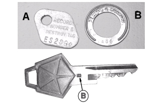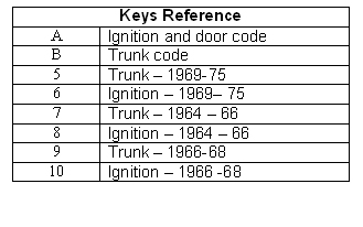 The keys from 1966-84 were nickel plated copper. Original keys have a Pentastar" and "Chrysler Corporation" logos. The vehicle keys from the assembly plant consist of a round and Pentastar shaped key and a destroy tag (Key ID number) for each key. Door / ignition key: The ignition key is rectangular and typically has a "Y" and stamped keyway. However, the "Y" is the most common but "I", "H" and "B " have been found. The original destroy tag for this key is a small rectangular aluminum tag with the stamped key code. Driver’s side door locks by rotating clockwise; passenger door, by rotating counter clockwise. Trunk key: Trunk lock is operated by the trunk key which is round headed with an "I" and stamped keyway. However, the "I" is the most common but "A" has also been found. The original destroy tag for this key is a small circular "washer type" steel tag with the stamped key code.